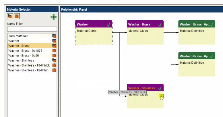 A Material Definition should only be added as a child to a Material Class. It can also be added as a child to more than one Material Class, which is helpful when a particular raw material logically belongs in several places.
