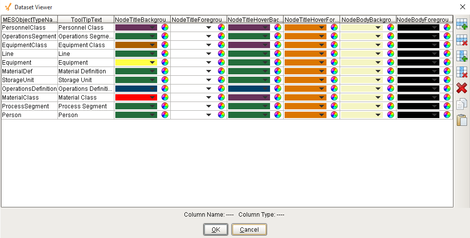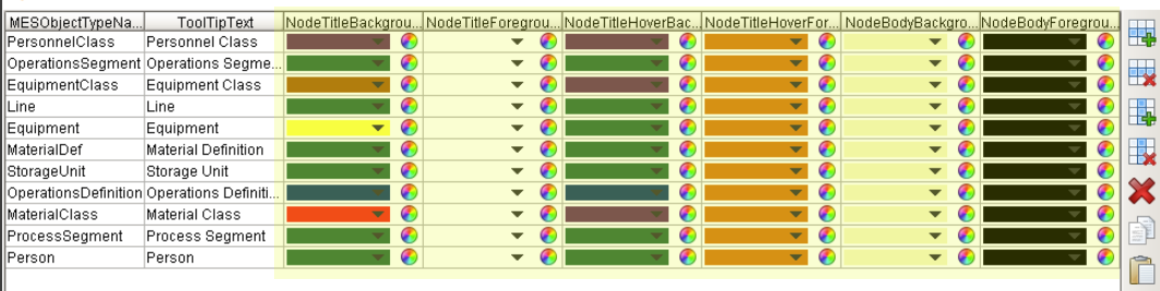 The colors of the different parts of a dataset node can be changed providing a visual deference of the different types of MES objects.