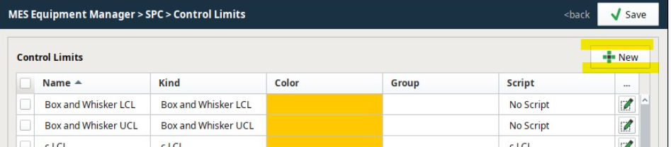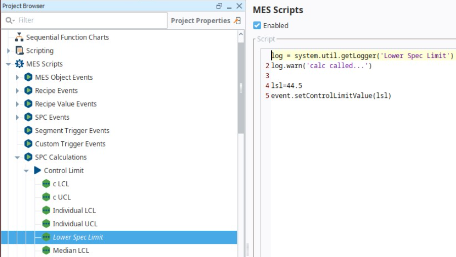 • In the Project Browser, under MES Scripts > SPC Calculations, add a Control Limit script.