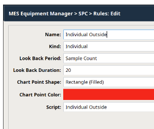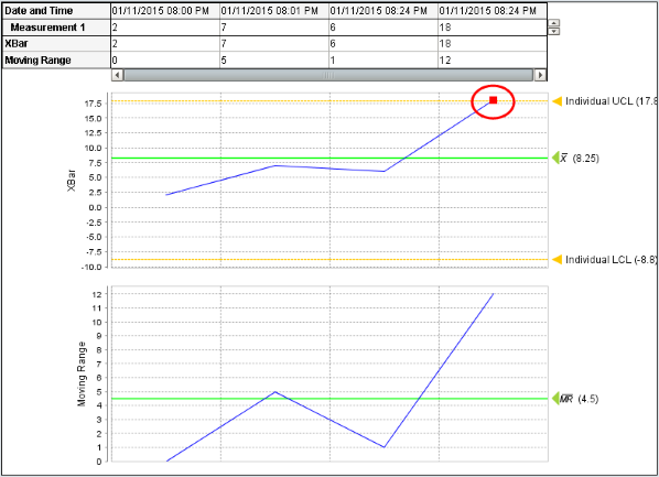 | Individual Outside | Individual | A single sample point outside the defined control limits. |