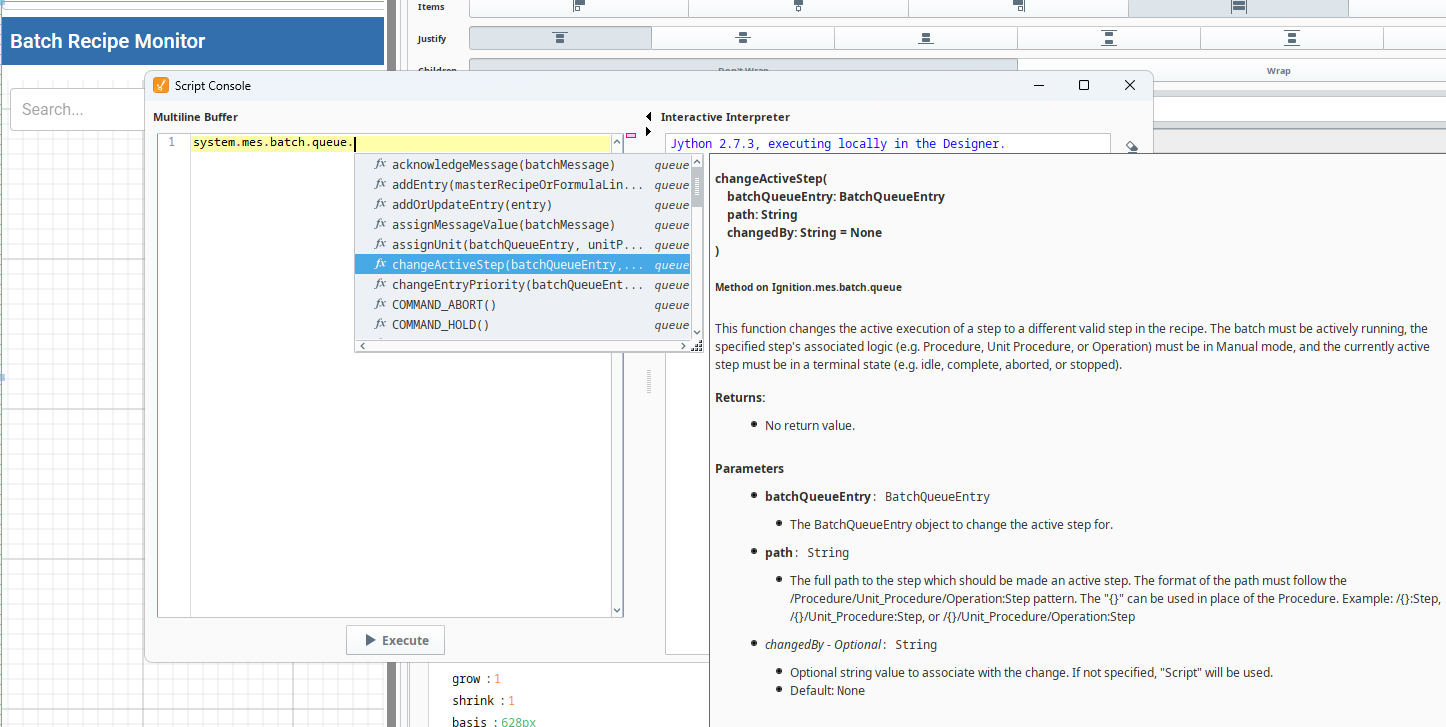system.mes.batch.queue.changeActiveStep(batchQueueEntry, path, [changedBy])