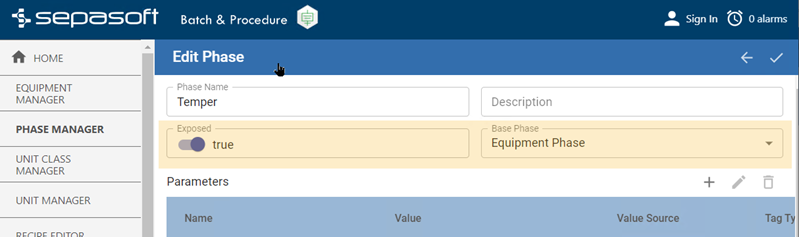 Equipment Phase Parameters
