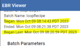 parameters | In the output EBR, you can sort parameter by clicking on the column headers. By default, the Parameter tables are sorted by the Timestamp column. | ||||||||||