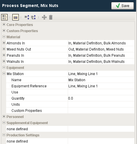 | Name | String | Equipment | This is the name to refer to this equipment resource by. Some process segments may have multiple equipment resources and this is a unique name displayed to the operator, shown in analysis and reports, and also internally used to reference this equipment resource. |