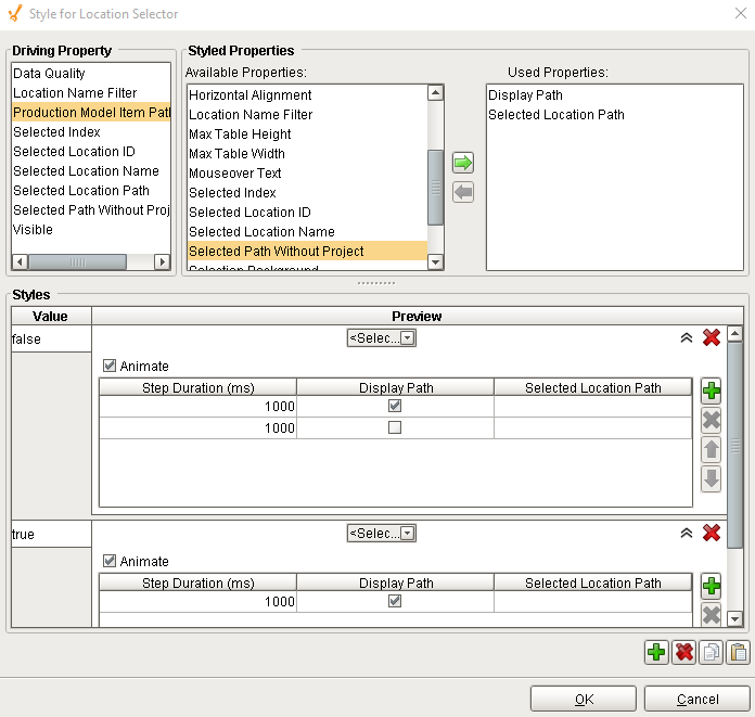 A component that allows selection of production locations. Production locations are defined in the production model using the Ignition Designer. There is no need for SQL queries or scripting to display locations. The selected location is reflected in Selected Location Name, Path and Location ID properties.