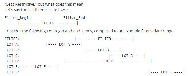 - Each of these Lots have a begin time that is equal to or before the filter's end time.