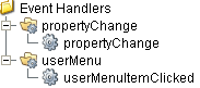 Event handlers provide the ability to add custom script when a user interacts with a component such as by selecting a menu item or when a component property changes.