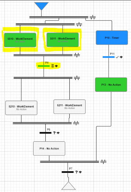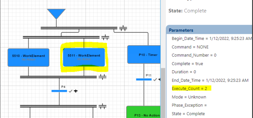 - Set the parameter for the transition to True to complete the No Action phases 5510 and 5511.