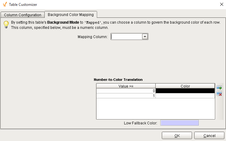 | Odd Row Background | oddBackground | Color | Color which odd rows will be colored if background mode is 'Alternating'. |