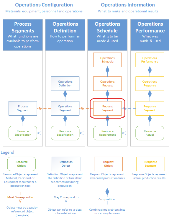 A request segment uses complex property objects to hold information about the resources that have been assigned to the scheduled operation. These complex properties are automatically added to the request segment when an operation is scheduled using the MES Schedule View component or can be added through scripting with the AbstractMESObject.createComplexProperty() function.