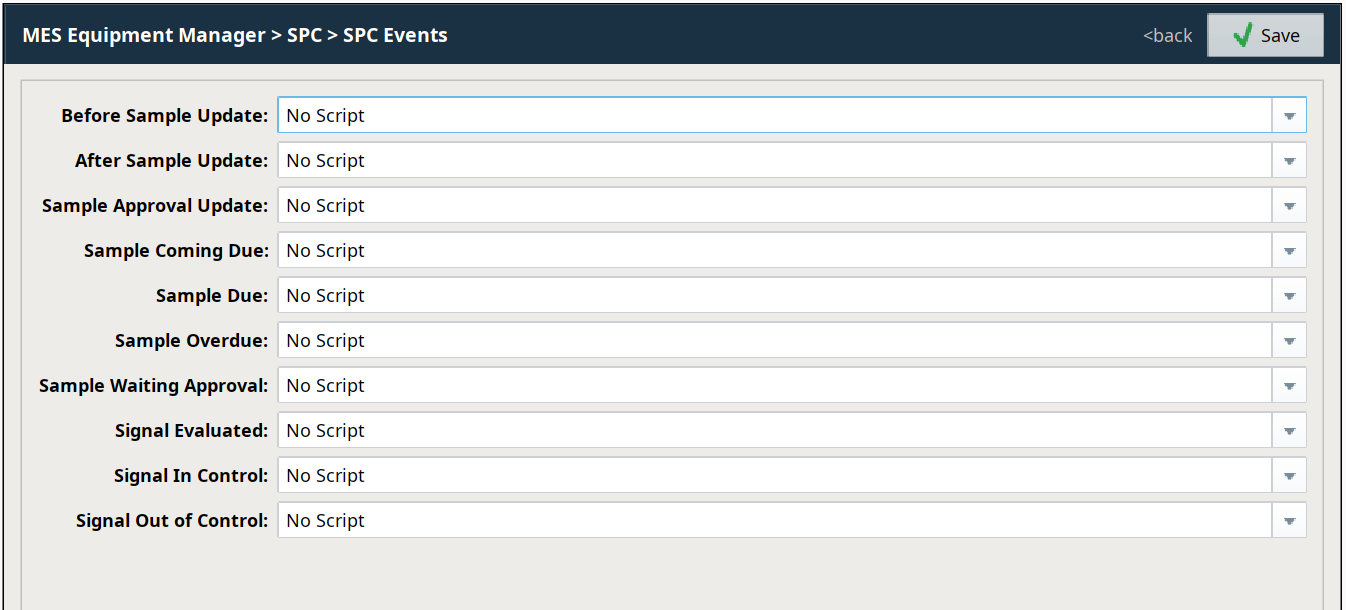 The SPC Sample Events View is only available for Location equipment items in the Production Model.