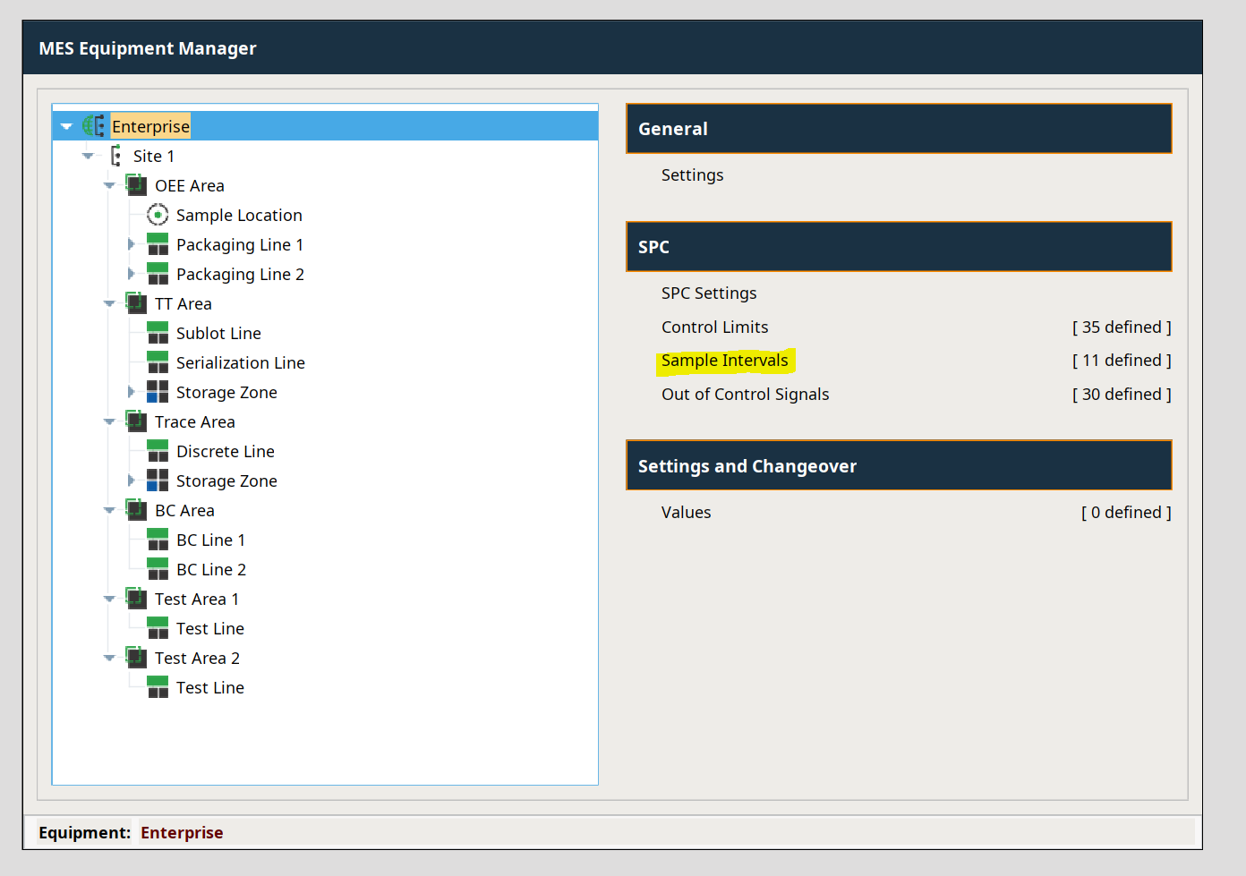 Edits to the pre-built SPC intervals found on the Enterprise node in the Equipment Manager are reset to the default settings on MES Module restart. |