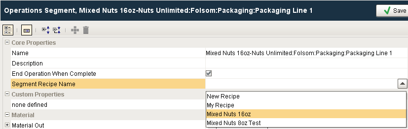 If your project includes Lot Tracking or OEE using our OEE Downtime and Track & Trace modules, the downloading of recipe values to production items is handled by the Operations Segment Segment Recipe Name setting. Whenever the Operations Segment begins or is executed, the selected recipe values will be downloaded to the production item.