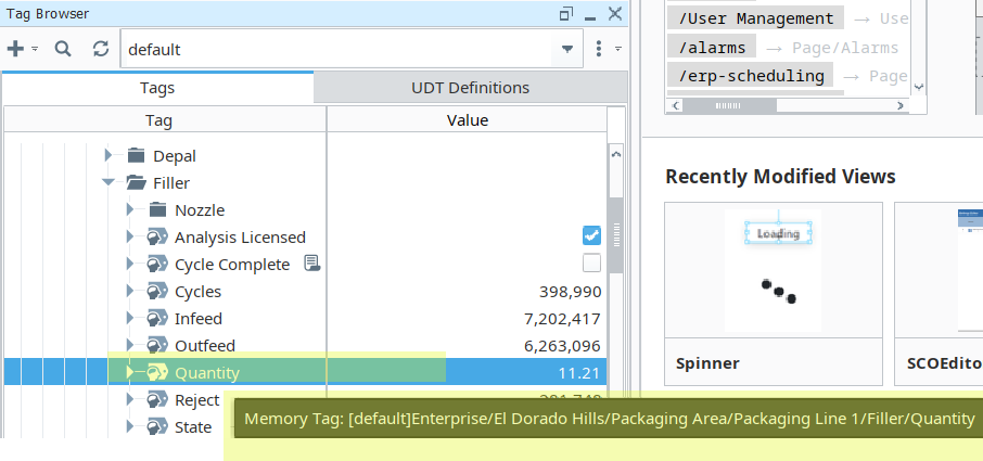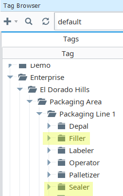 - Under the Filler folder, add a tag (OPC or Memory) for Quantity. See the Ignition documentation for information about Tags.