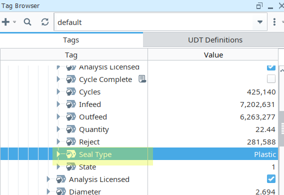 - Under the Sealer folder, add a tag (OPC or Memory) for Seal Type.