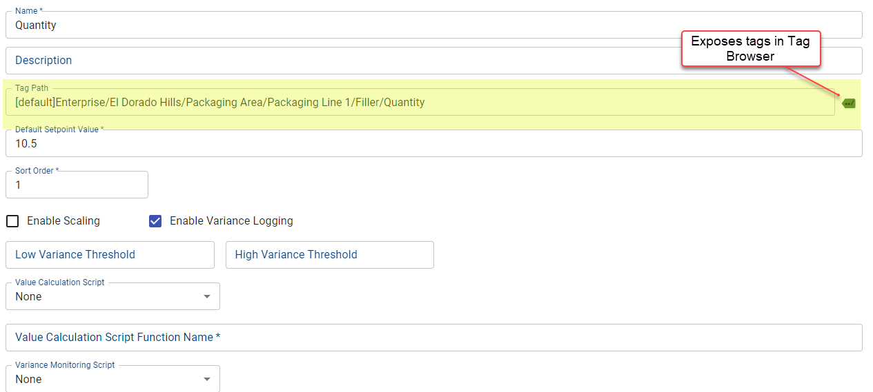- Use the tag browser tool to navigate to the Quantity tag under Tag Path.