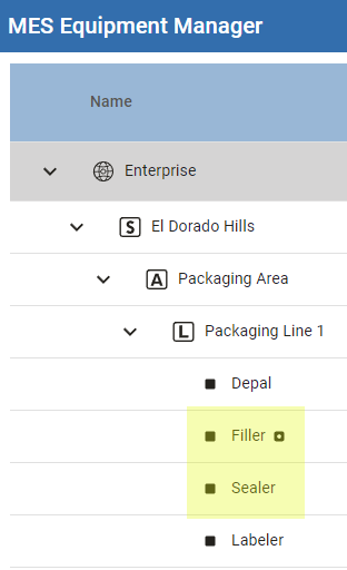| This example adds setpoints for the Filler and Sealer. These machines are set up as Cells under the Line. | |