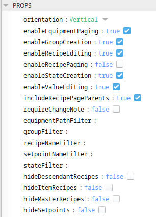 enableRecipeEditing | Set to True to allow adding, editing and deleting of recipes. Set to False is a read-only view. |