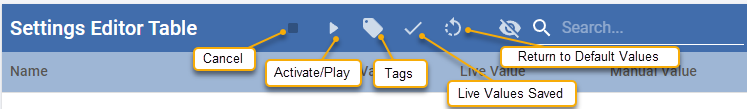 Settings Editor Table