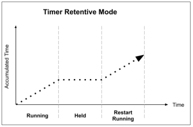 | Timer_Mode | Modes control how the accumulated time value changes if the state changes from Running. See Timer_Mode below. |