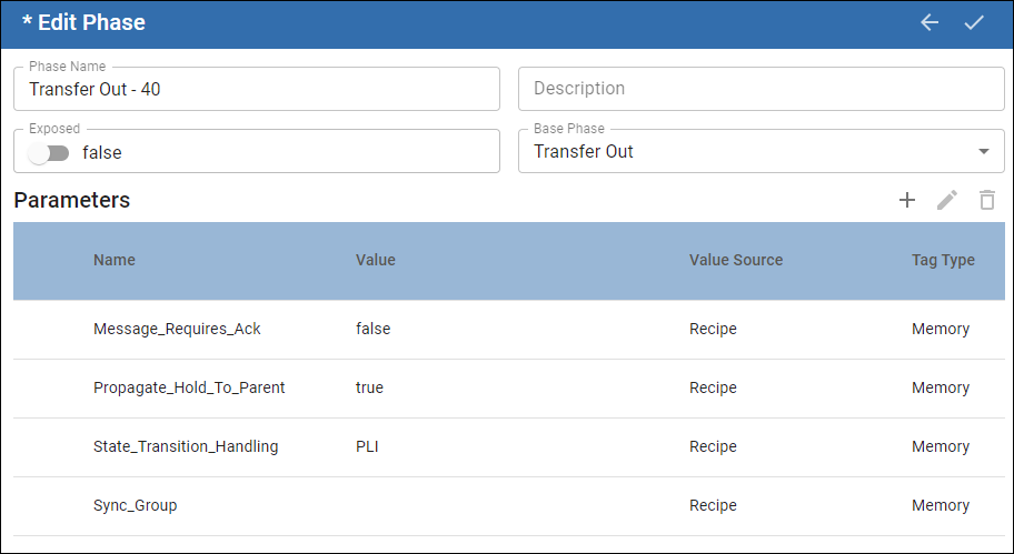 | Sync_Group | String | Use synchronization groups to pass values among phases. | Synchronize Transfer In Transfer Out |
